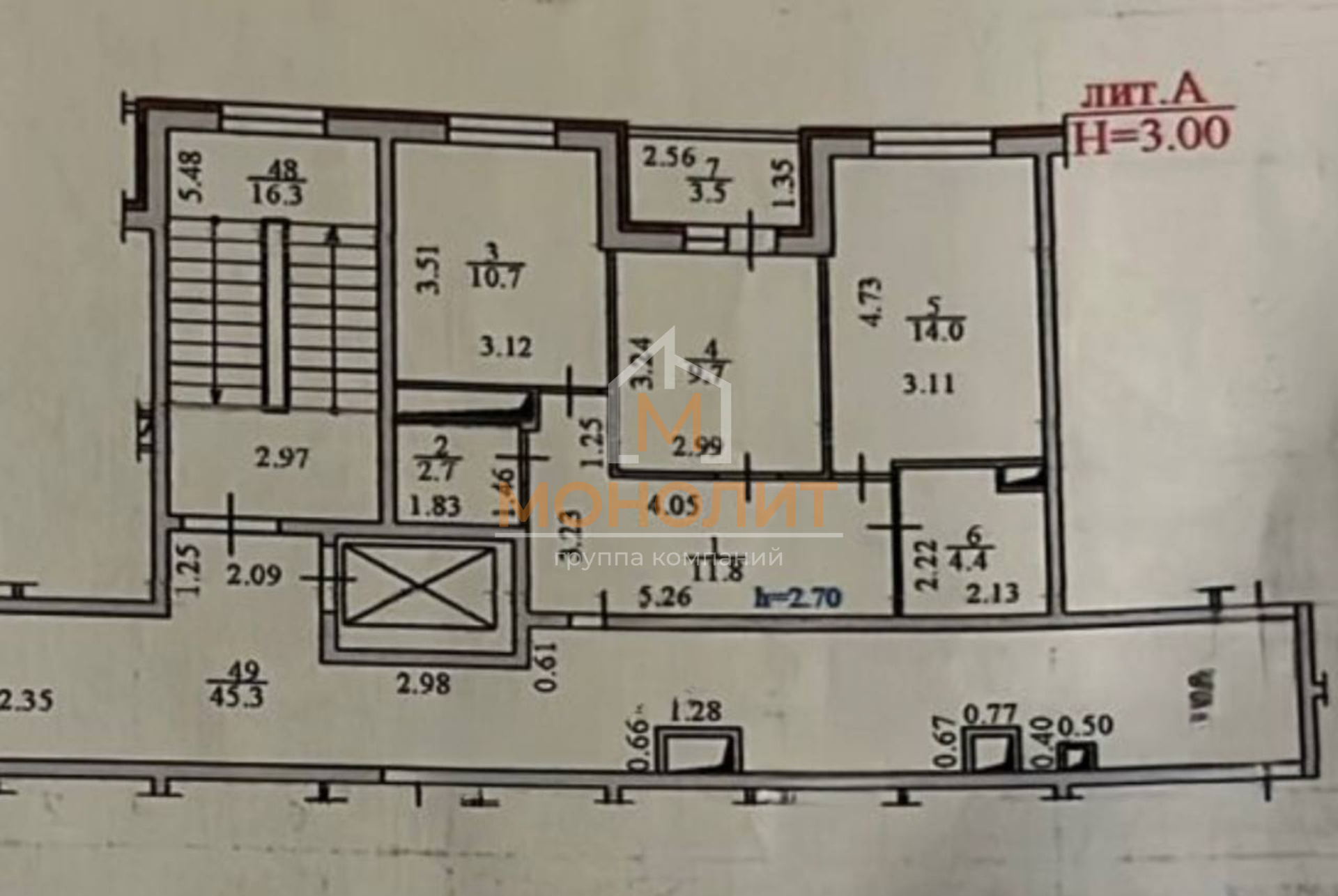 ✔️ общая площадь 53,3 м²